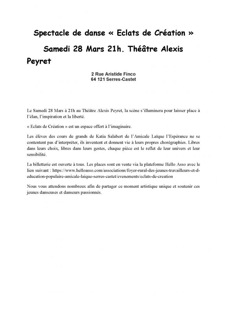 • Spectacle de danse « Eclats de Création »