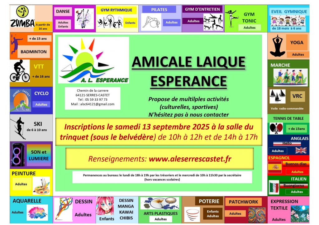 Inscriptions à l'Amicale Laïque l'Espérance et licences